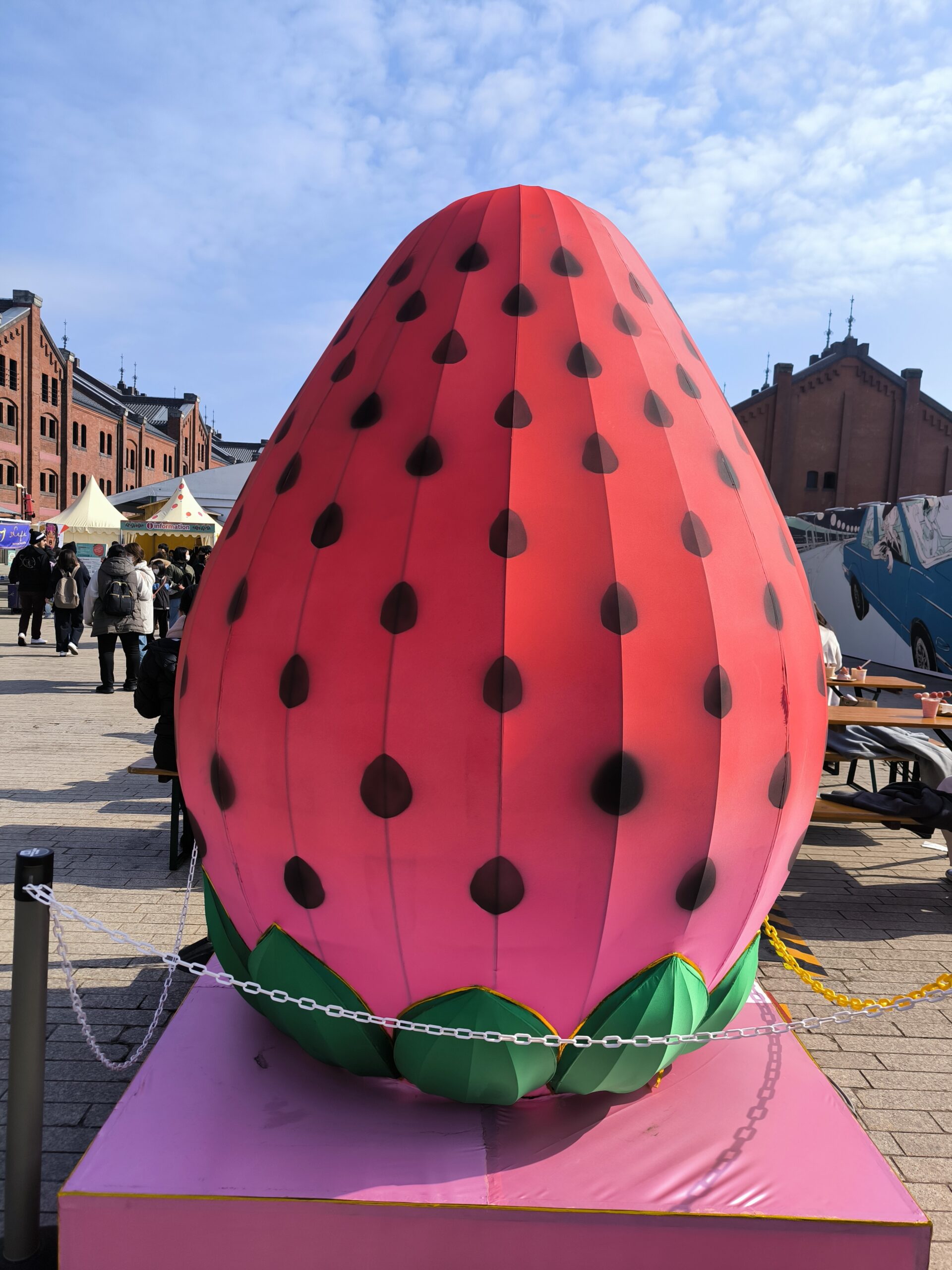 午前中は比較的混雑が穏やかなので、限定スイーツの確保と、入り口にある巨大いちごオブジェでの記念撮影を済ませましょう。