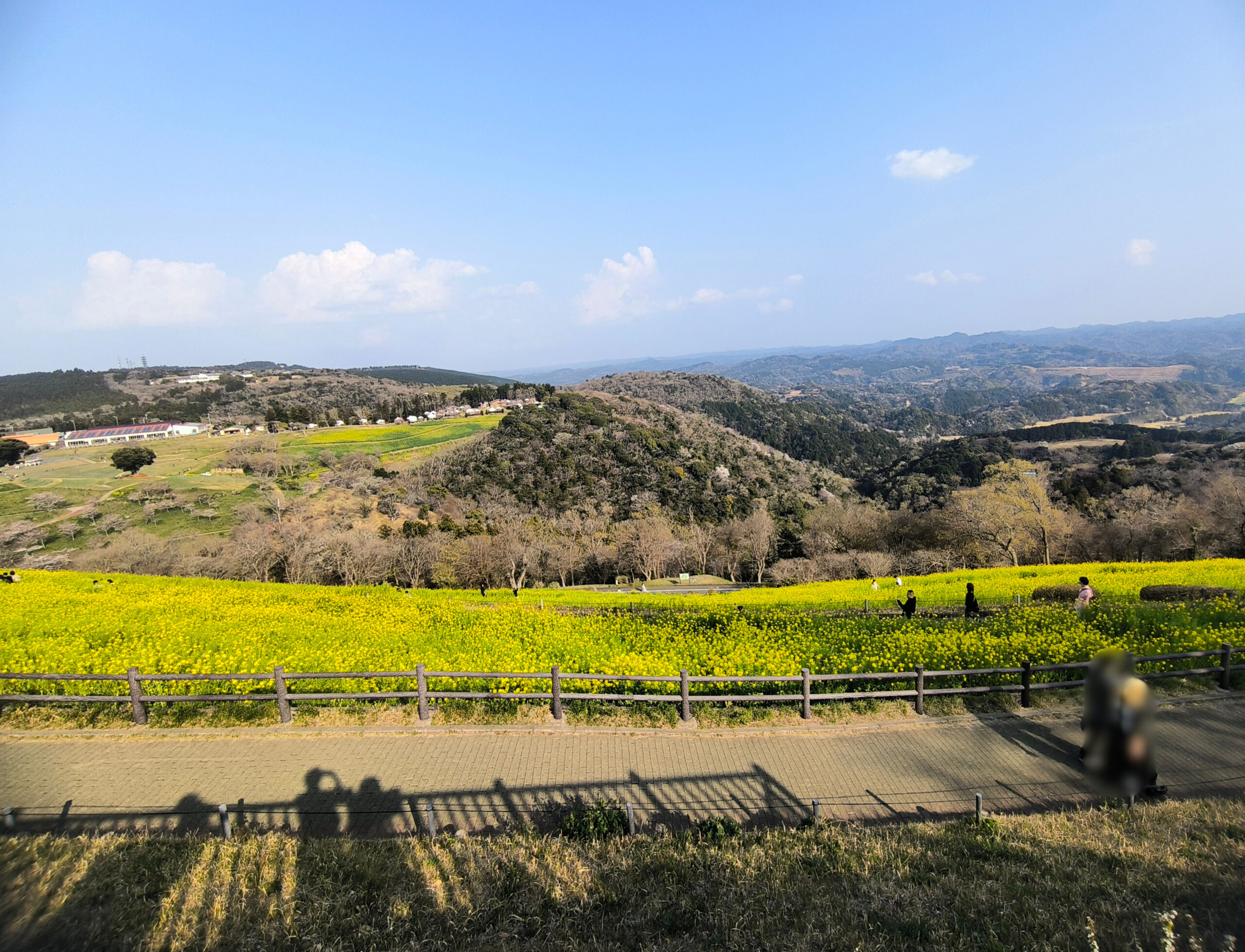 この時期の主役は、見渡す限りに広がる黄色い菜の花畑です。